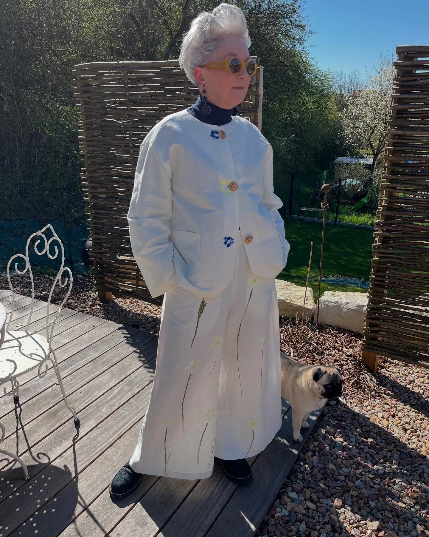 Every piece we create is a labor of love and tells a story. Sewn by Catherine in her cozy country home, where the fire crackles beside her, or knitted by Léa as she roams through beautiful landscapes, or . Together, we blend the warmth of knitwear and the elegance of sewn garments, creating clothing that’s meant to be cherished, worn, and passed along from one pair of hands to another—bridging generations and capturing the spirit of enduring beauty.